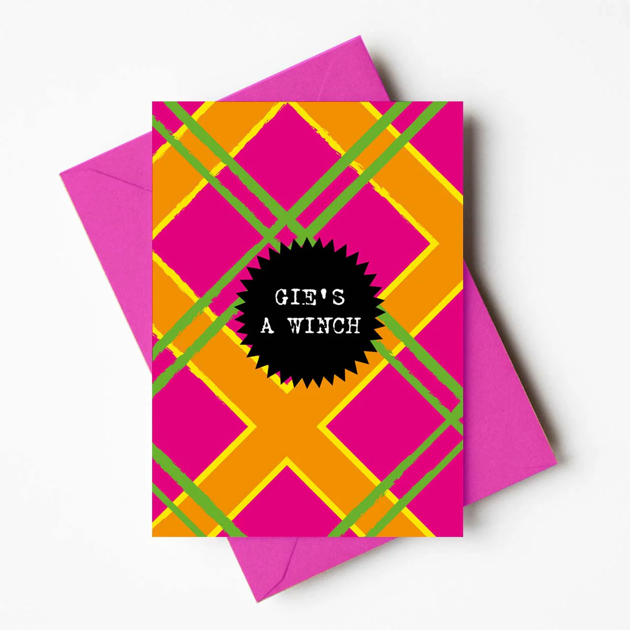 Gie's A Winch, probably the most romantic a Scot will get! An ideal card tae send for Valentine's or an anniversary, or tae declare yer love.